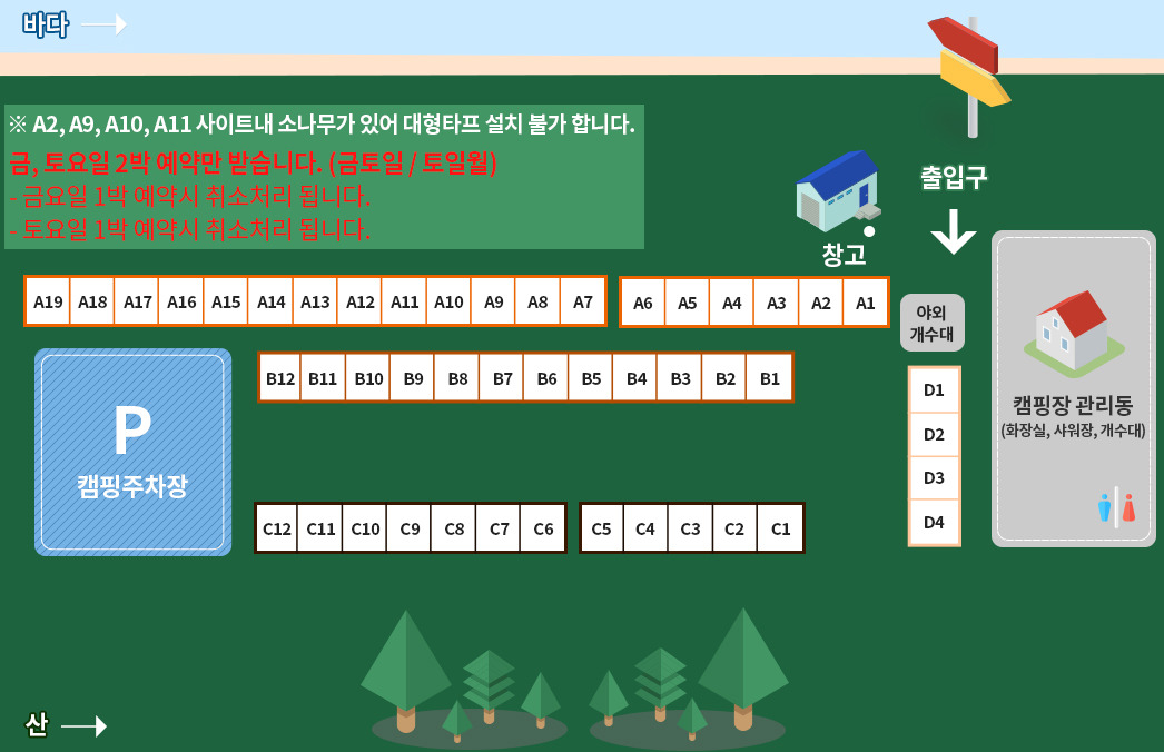 팁: 체크인 시간 13:30~14:00 사이에 도착해서 ‘자리 먼저 보고 텐트 설치’ 전략이 가장 좋아요.