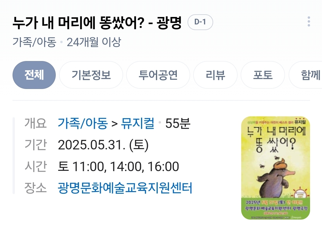 아이와 함께한 첫 뮤지컬! 「누가 내 머리에 똥쌌어?」 광명 공연 생생 후기