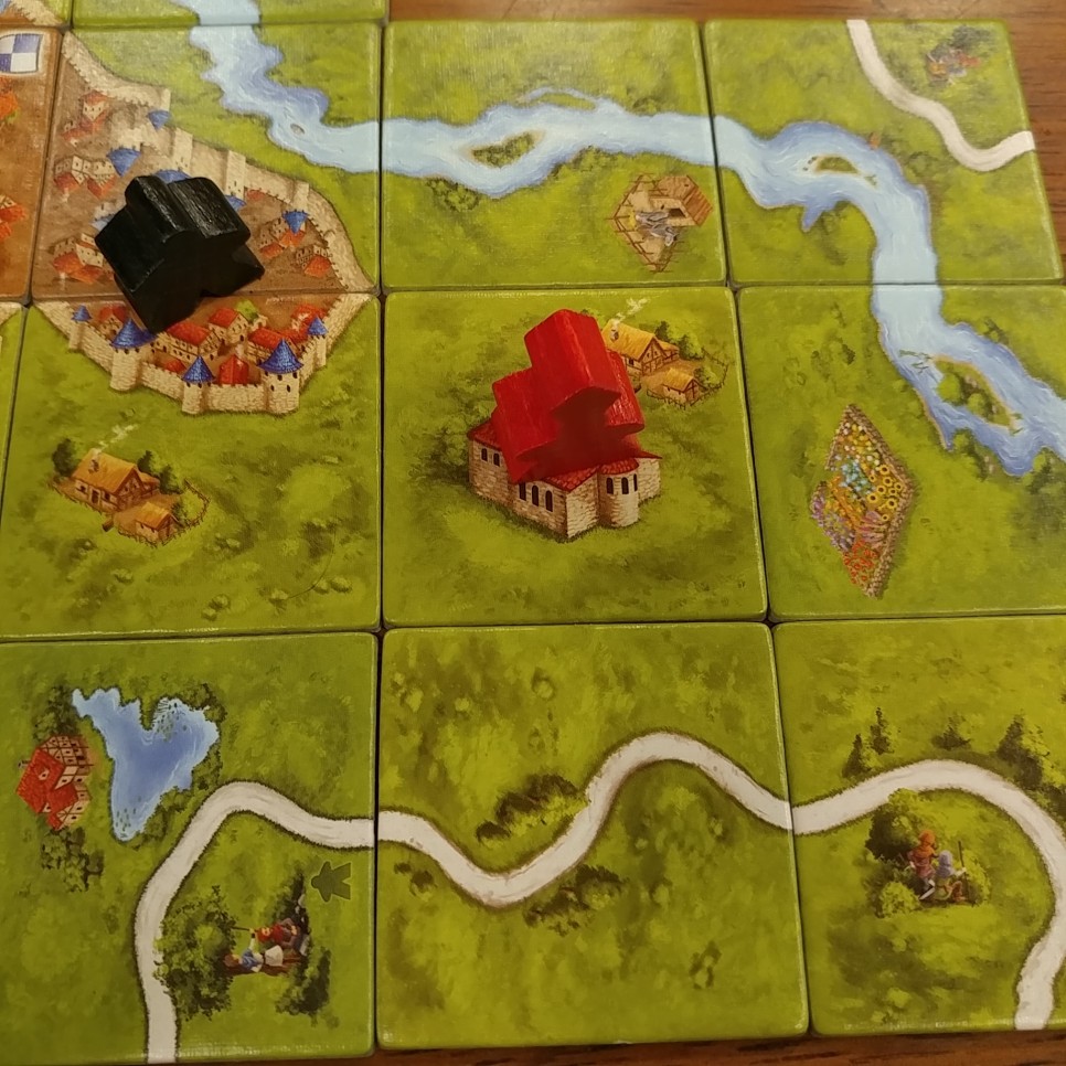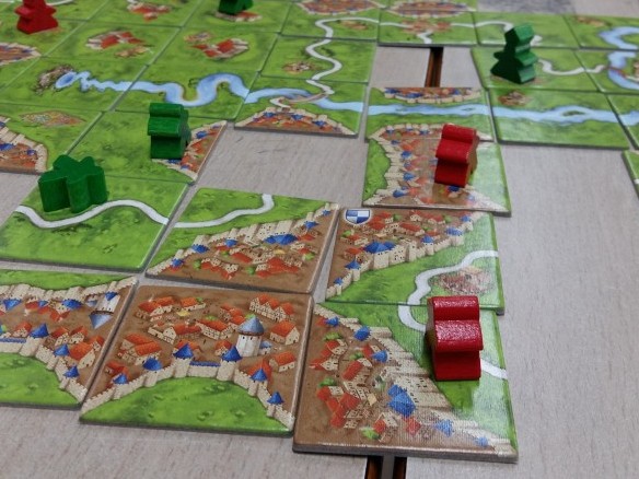 카르카손은 타일을 이어 도시, 길, 수도원 등을 완성하며 점수를 획득하는 게임입니다.