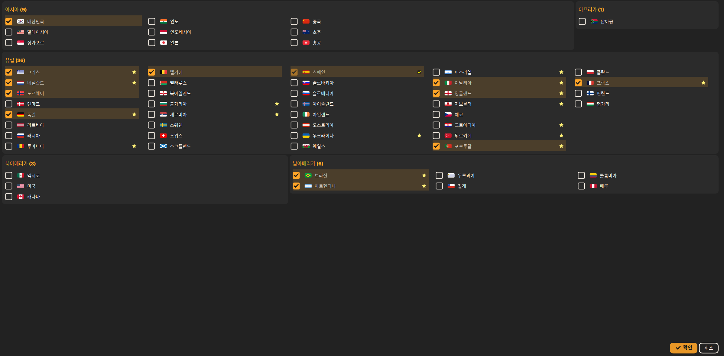리그 선택: 자국 리그 포함, 최대 6~8개 정도가 적당