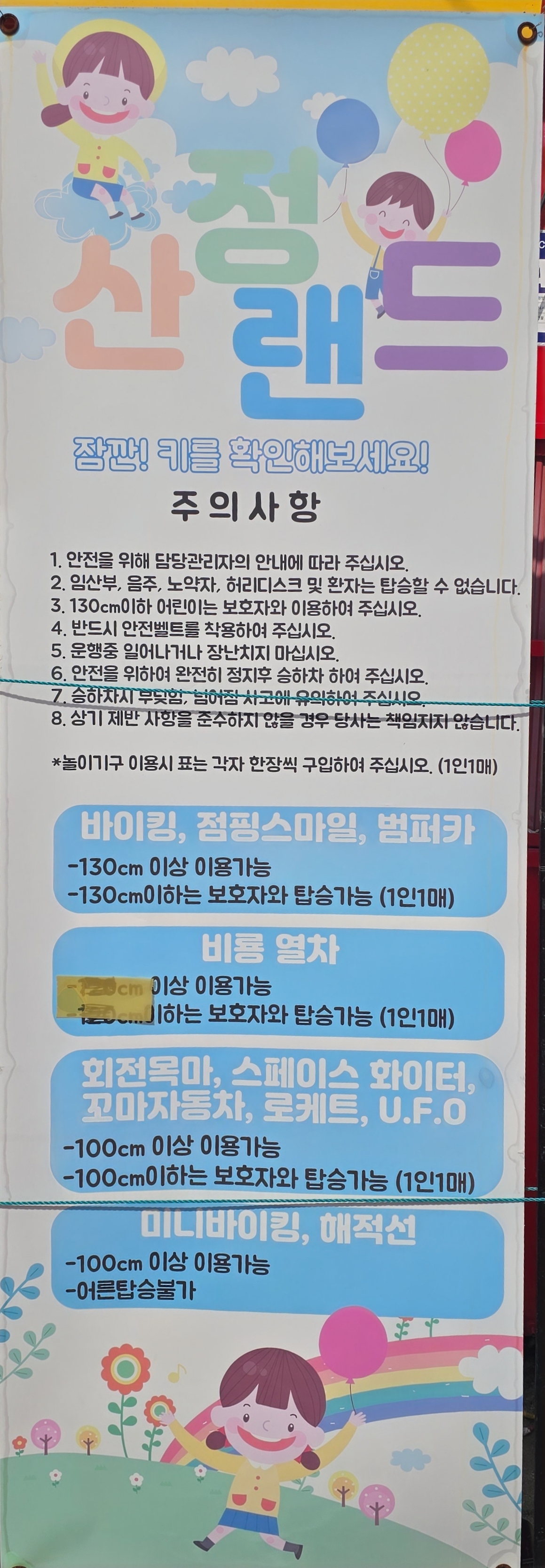 놀이기구키 제한비고