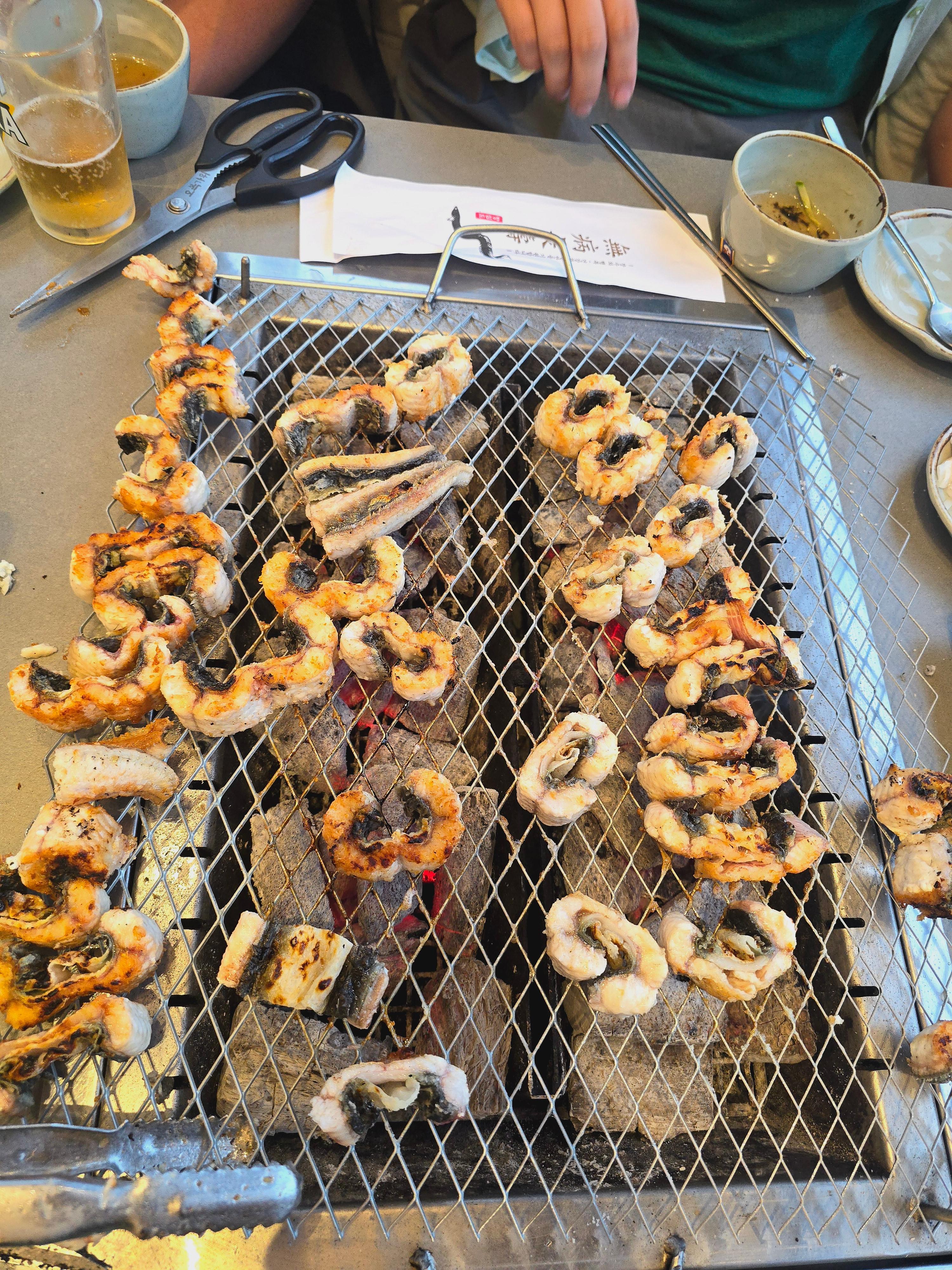 만약 내 테이블에 장어를 먹으면서 한잔하는 중인데 ?