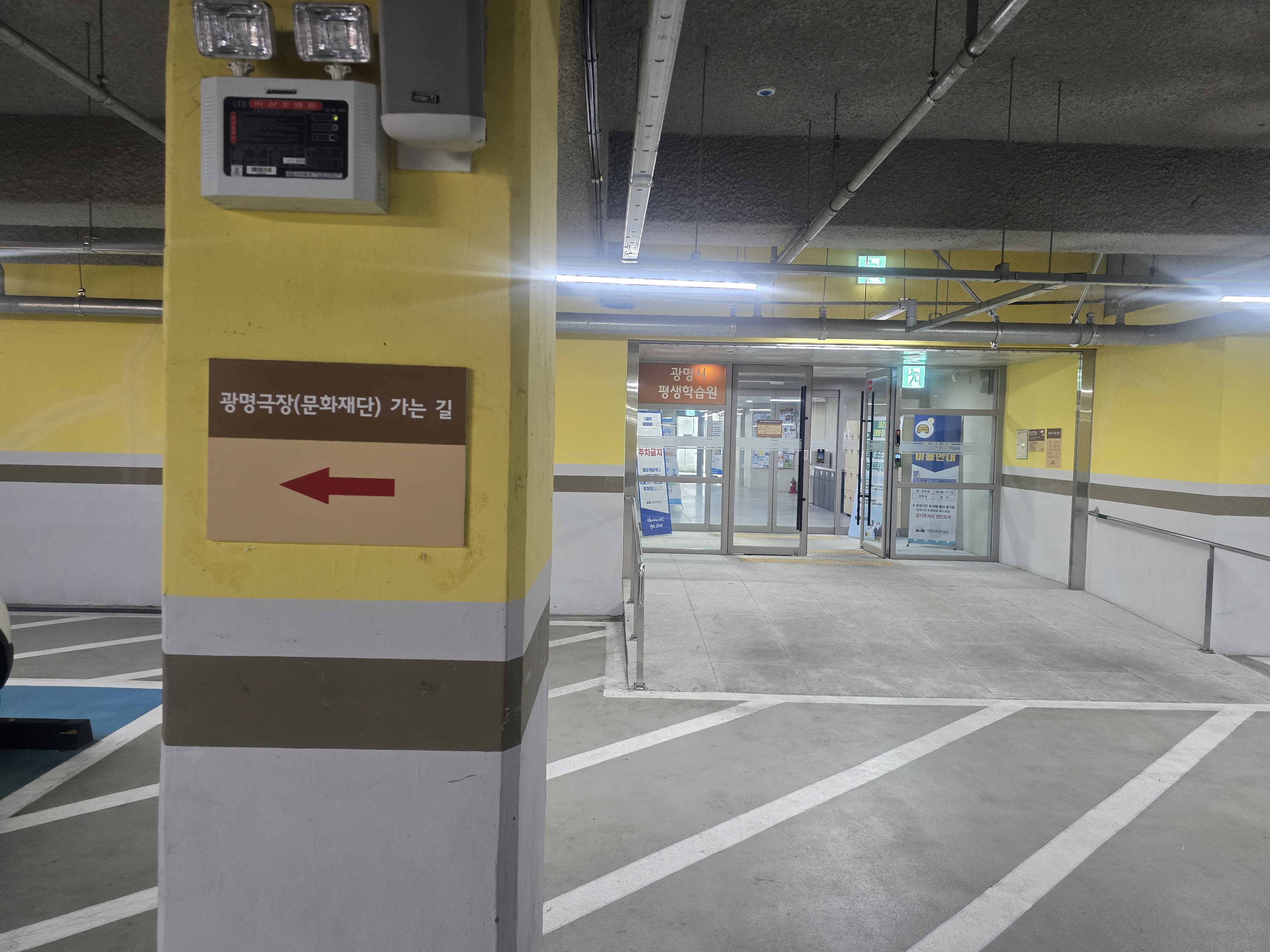 단 지하주차장에서 꼭 아래의 사진과 같이 광명극장 가는 길로 오셔야 합니다.