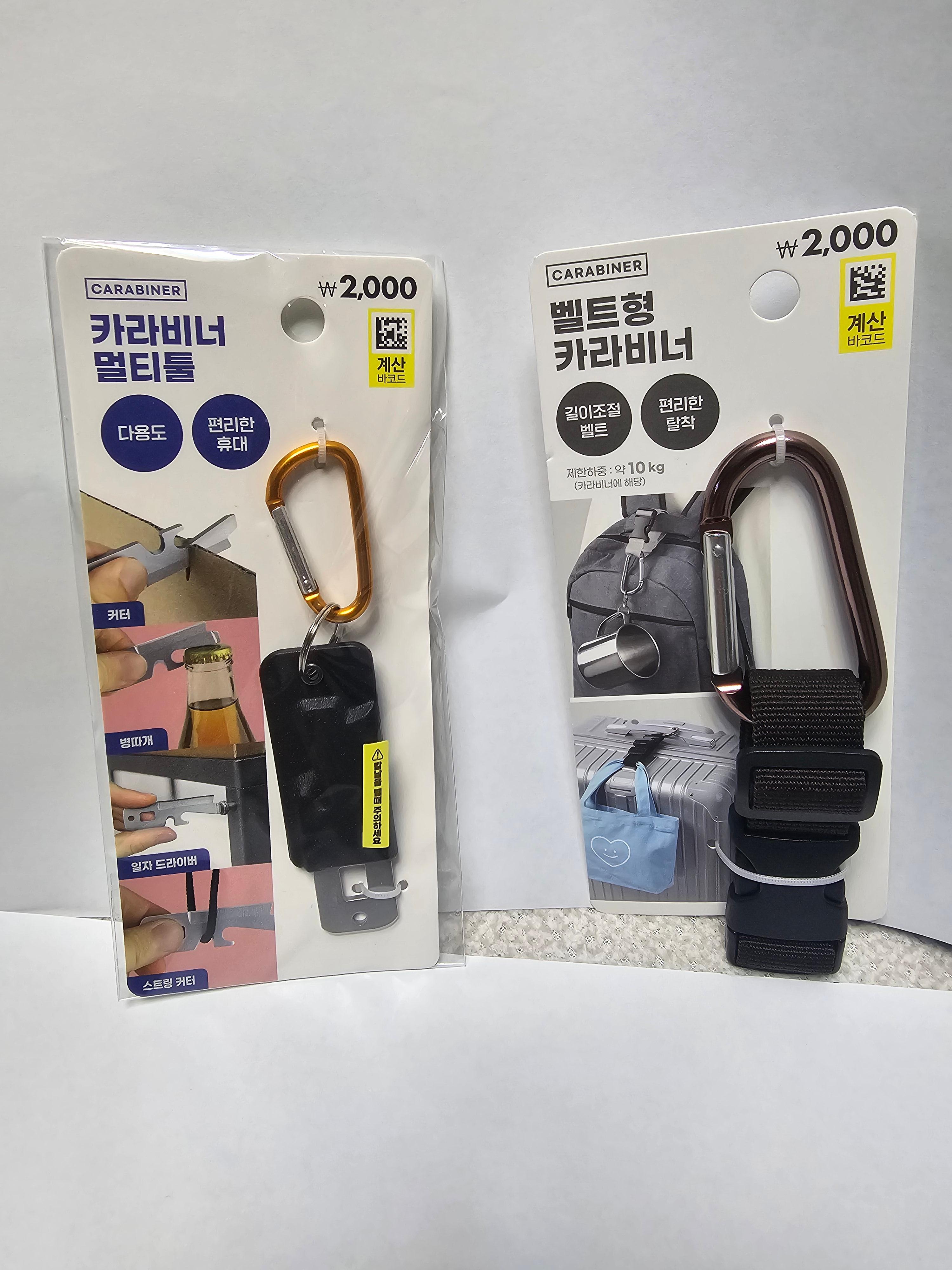 그 이유는 사진의 첫번째 카라비너의 경우 카라비너 역할만 있는 것이 아닌 커터,병따개,드라이버 등 복합적인 기능이 있어